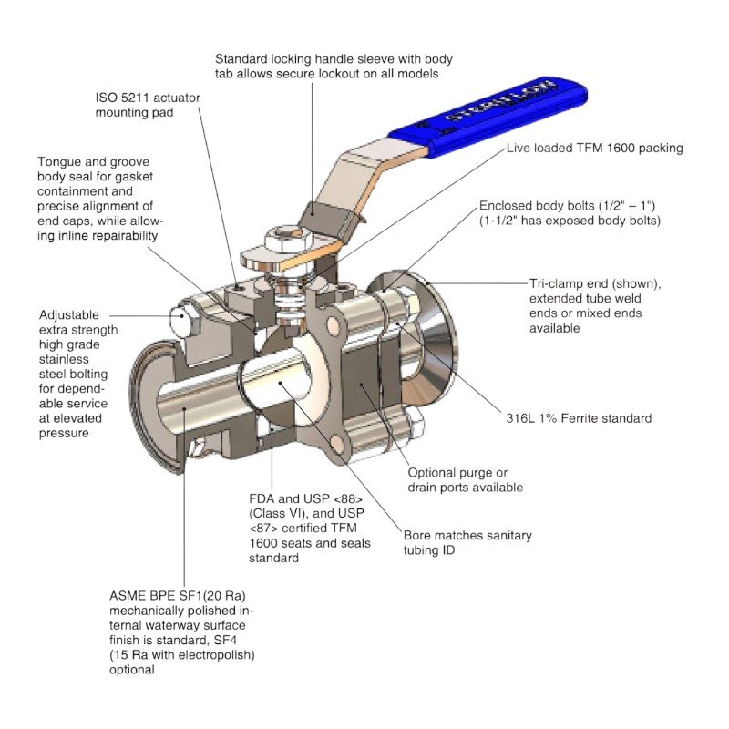 • Standards — 3-A, FDA, ISO, ASME BPE compliant