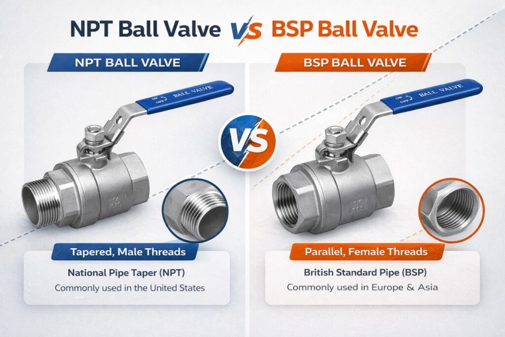 Choosing the correct thread type is critical for leak-free installation. NPT and BSP threaded ball valves are not interchangeable and are used in different regions and piping standards.